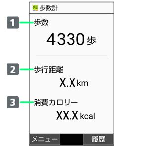 • ↓歩数計ONaquos-keitai4_icon_060表示)