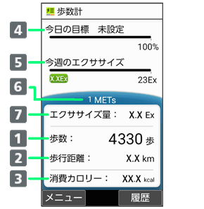 歩数計画面(簡易表示/詳細表示)の見かた