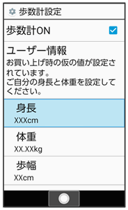 歩数計設定画面が表示されます。