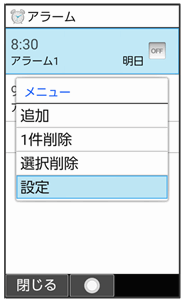 アラーム鳴動時の動作や休日に関する設定などができます。設定できる項目は次のとおりです。