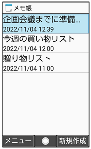 メモ帳一覧画面でメモを選択/メモ帳表示画面を表示