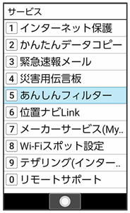 あんしんフィルター画面が表示されます。