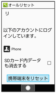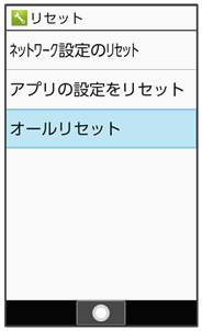 オールリセットを行うと、内部ストレージのデータがすべて消去されます。必要なデータは事前にバックアップをとることをおすすめします。