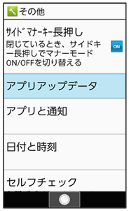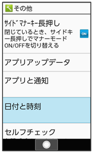| サイドマナーキー長押し | クローズポジション時に、サイドボタン長押しでマナーモードに切り替えるかどうかを設定します。 | |