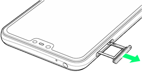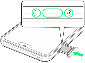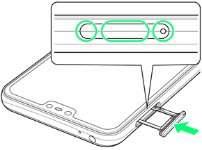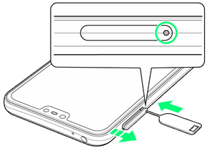 • ↓ディスプレイ側を上に向け、スロットキャップの穴にSIM取り出しピンの先を差し込む