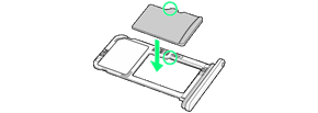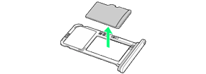• ↓SDカードの金属端子面を下にしてスロットキャップのトレイにはめ込む