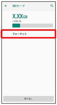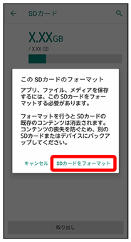 • フォーマットすると、SDカード内のデータがすべて消去されます。ほかの機器で使用したSDカードをフォーマットするときは、あらかじめよくご確認のうえ、操作してください。