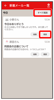 • 既読をタップすると、タップしたメールが既読になります。
