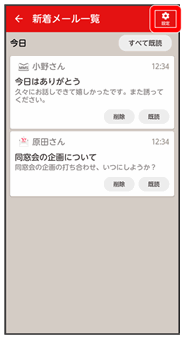 • ↓新着メール一覧画面で設定