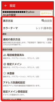 アカウントの別表示 Y!mobile メールと連携しているYahoo!メールを個別に表示させるかどうかを設定します。