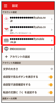 • ↓Y!mobile メール設定画面で、Y!mobile メールのアカウントをタップ