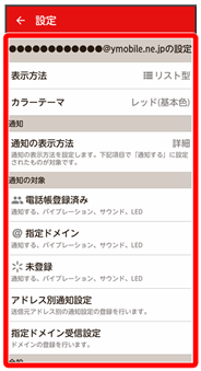 指定ドメイン 指定ドメインに登録した相手からメールを受信したときの通知方法を設定します。