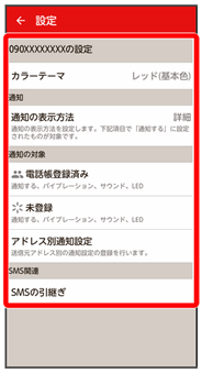 アカウント設定 メールアカウントの設定ができます。詳しくは、「Y!mobile メールの設定」「MMSの設定」「SMSの設定」を参照してください。