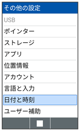 | 日付と時刻 | 日付や時刻に関する機能を設定できます。 | |