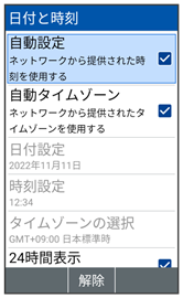 | 自動タイムゾーン | ネットワークから提供されたタイムゾーンを利用するかどうかを設定します。 | |