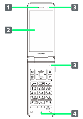 | サブディスプレイを表示、マナーモードの設定/解除(長押し) |