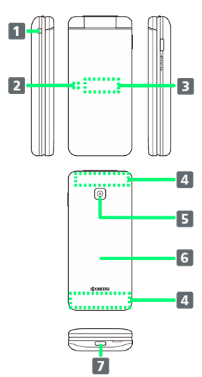 | 通話時、インターネット利用時などに使用します。感度に影響しますので、シールなどを貼ったり手で覆ったりしないでください。 | ||