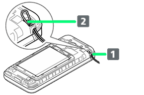 | USIMカードやSDカード、電池パックの取り付け/取り外し時に取り外します。 | ||
