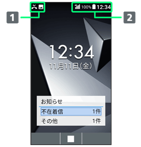 画面上部のステータスバーには、新着メールなどをお知らせする通知マークや、本機の状態を示すステータスマークが表示されます。