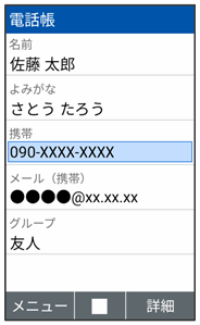電話帳詳細画面(簡易)が表示されます。