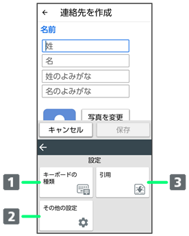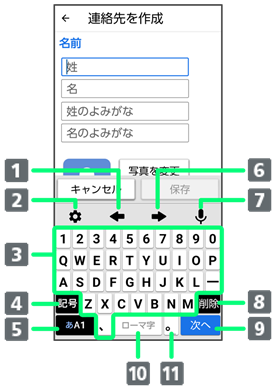 テンキーボード/QWERTYキーボードをタップします。 - キーボードを非表示にするには、戻るをタップします。