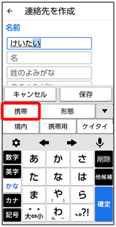 テンキーで、「携帯」と入力する方法を例に説明します。