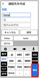 テンキーで、「Keitai」と入力する方法を例に説明します。