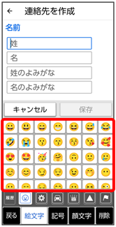 - 絵文字/記号/顔文字のリストを表示します。ロングタッチすると引用入力を利用できます。