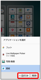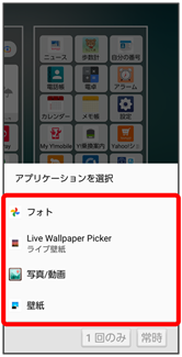 - 画像を選択をタップすると、本体やSDカードに保存された画像を壁紙に設定することができます。画面の指示に従って設定してください。