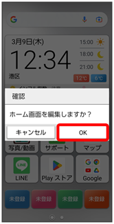 - ホーム画面でアイテムをロングタッチ