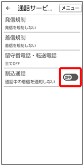 | 割込通話1 | 通話中にかかってきた電話を受けることができます。 | |