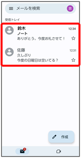 - 新着メールが2件以上あるときは、メール一覧画面が表示されます。確認する新着メールをタップしてください。
