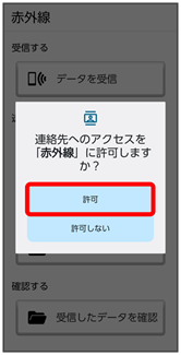 | 赤外線を利用して、ほかの機器と電話帳データやプロフィール、ファイルなどの送受信を行うことができます。また、ほかのアプリからも共有機能により、赤外線送信を行うことができます。 | ||