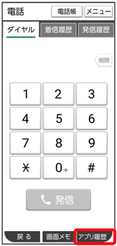 - アプリの履歴画面でアプリ履歴をタップすると、1つ前に使用していたアプリが表示されます。