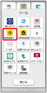 緊急速報メール受信メッセージ一覧画面が表示されます。
