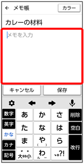 - メモの入力画面でカラーを設定すると、メモ帳一覧画面で、対象のメモの背景が設定したカラーの色で表示されます。カテゴリ分けなどに利用できます。