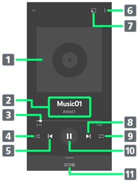 - 全曲リピート/1曲リピート/通常再生を切り替え