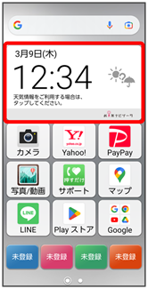 ホーム画面の「時刻/天気」部分に、現在地の天気が表示されるようにします。