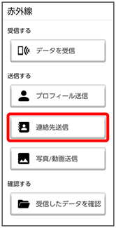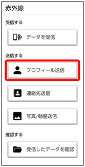 赤外線画面から、プロフィール、電話帳、その他ファイルを送信できます。