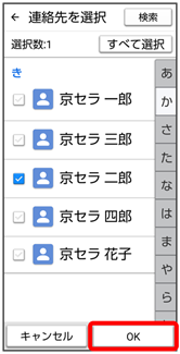 - 連絡先選択時にすべて選択/すべて解除と操作すると、すべての連絡先を選択(