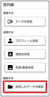 詳しくは、「赤外線通信でデータを1件ずつ受信する」、「赤外線通信で機能ごとのデータを一括して受信する」を参照してください。