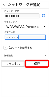 - 非公開ネットワークのアクセスポイントのときは、詳細設定をタップして、「非公開ネットワーク」をはいに変更してから保存をタップしてください。