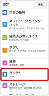 電池の消費を抑える設定や、電池の使用状況を確認できます。