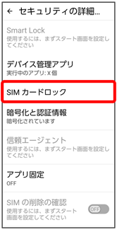 スタート画面のセキュリティや、USIMカードロックなどに関する設定ができます。