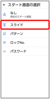 - 変更前のスタート画面のセキュリティがなしまたはスライド以外のときは、セキュリティの種類をタップしたあとセキュリティを解除する操作が必要です。