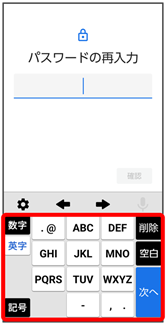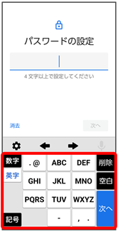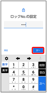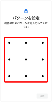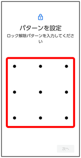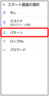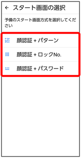 - 画面の指示に従って、スタート画面のセキュリティ解除用のパターン/ロックNo./パスワードを設定