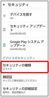 - 変更前のスタート画面のセキュリティがなしまたはスライド以外のときは、セキュリティを解除してください。