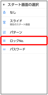 - ロックNo.でスタート画面のセキュリティを解除するように設定する