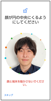 - 画面のガイドに顔を合わせて、画面の指示に従って顔データを登録