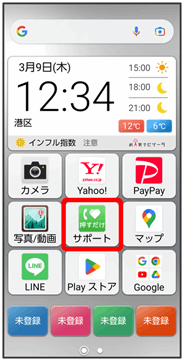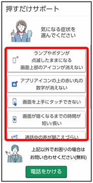 「サポート」アプリをタップするだけで、本機の症状を確認してくれます。症状を改善できない場合は、アプリから直接「かんたんスマホ カスタマーセンター」に電話をかけることもできます。「かんたんスマホ カスタマーセンター」への通話は無料となります。